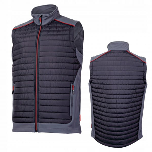 Bezrękawnik ocieplany Lahti Pro L41310 w kolorze czarnym uszyta z trójwarstwowego bardzo mocnego i miłego w dotyku materiału. Powłoka kamizelki wykonana ze stu procentowego poliestru o gramaturze 70g/m2. Tkanina soft-shell 96% poliestru oraz cztery procent elastanu o gramaturze 310g/m2. Wewnątrz kamizelki ocieplina o gramaturze 120g/m2. Podszewka wykonana z tafty 50g/m2 oraz micropolaru o gramaturze 160g/m2. Wstawki z trójwarstwowej tkaniny soft-shell z membraną TPU. Wodoodporność 8000mm oddychalność 3000g/m2/24h gwarantują wysoki komfort podczas użytkowania. Trzy kieszenie zamykane na suwak dwie zewnętrzne i jedna zewnętrzna. Kamizelka Lahti Pro L41310 zapinana na zamek błyskawiczny. Regulacja szerokości dołu kamizelki za pomocą specjalnego ściągacza. Wszystkie kamizelki posiadają certyfikat CE oraz spełniają normę EN ISO 13688.
