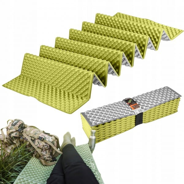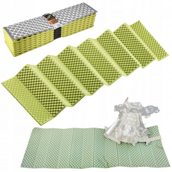 Karimata składana, materiał : Pianka XPE, wymiary po rozłożeniu: 185 x 56 x 1,8 cm, wymiary po złożeniu: 12 x 56 x 15 cm, waga : 320 g, wodoodporna, lekka i wytrzymała, izolacja termiczna od podłoża, łatwa w przenoszeniu, przeznaczenie turystyka i biwakowanie, w zestawie gumka ułatwiająca przenoszenie