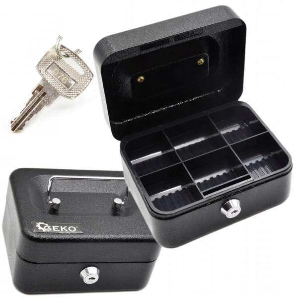 GEKO METALOWA KASETKA SEJF NA PIENIĄDZE 150X120X80MM NA KLUCZYK G10900