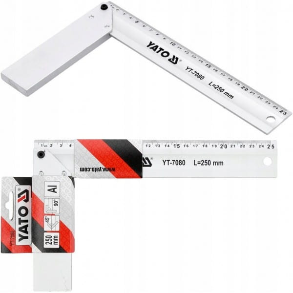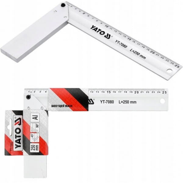 YATO UNIWERSALNY KĄTOWNIK POMIAROWY ALUMINIOWY KĄTOWNICA 250MM YT-7080