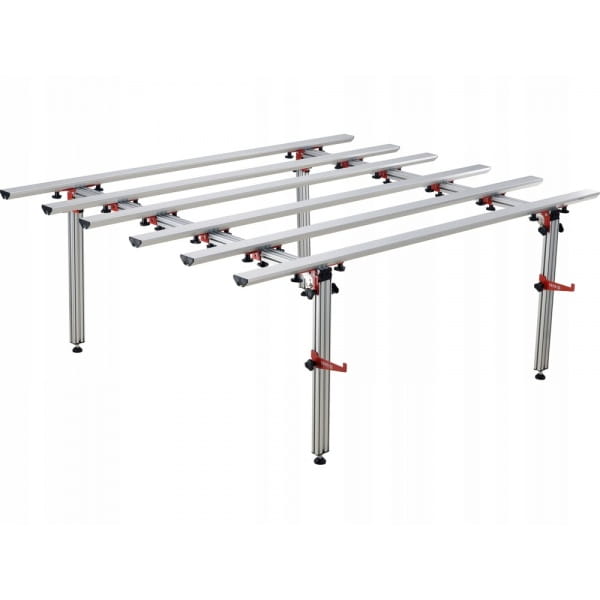 - stabilna konstrukcja z wytrzymałego aluminium gwarantuje pewne podparcie dla obrabianych materiałów
