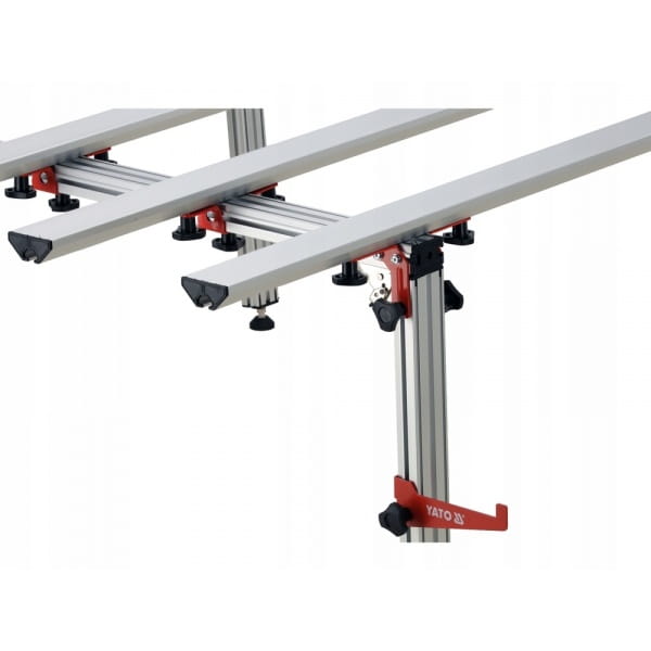 Wyposażony w cztery regulowane nogi, umożliwia łatwe wypoziomowanie na nierównym podłożu, zapewniając bezpieczną i solidną powierzchnię roboczą, niezależnie od warunków. Stół doskonale sprawdza się nie tylko jako stanowisko dla glazurnika, ale także jako uniwersalny stół warsztatowy – do montażu, cięcia czy przygotowania materiałów. To funkcjonalne rozwiązanie dla fachowców ceniących trwałość, mobilność i dokładność wykonania.