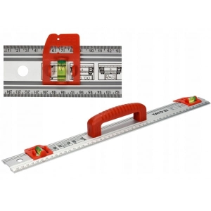 Liniał aluminiowy o długości 500 mm, z uchwytem i dwiema libellami.
