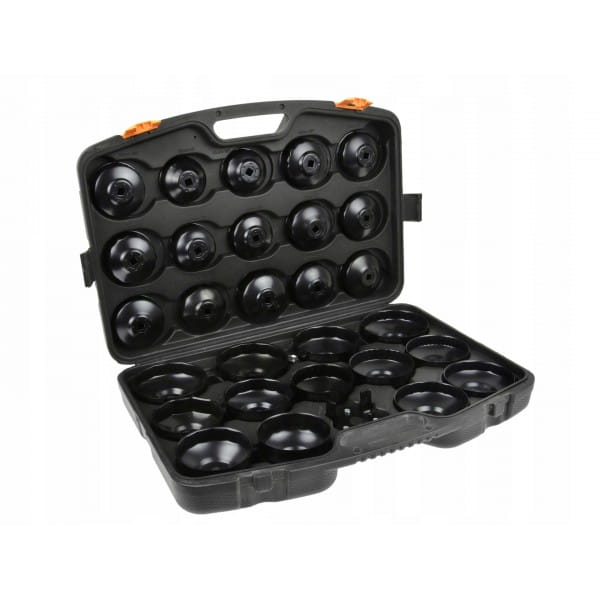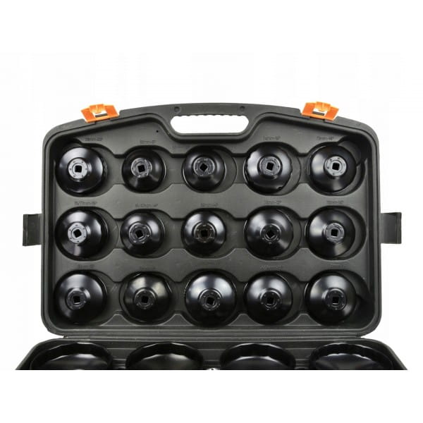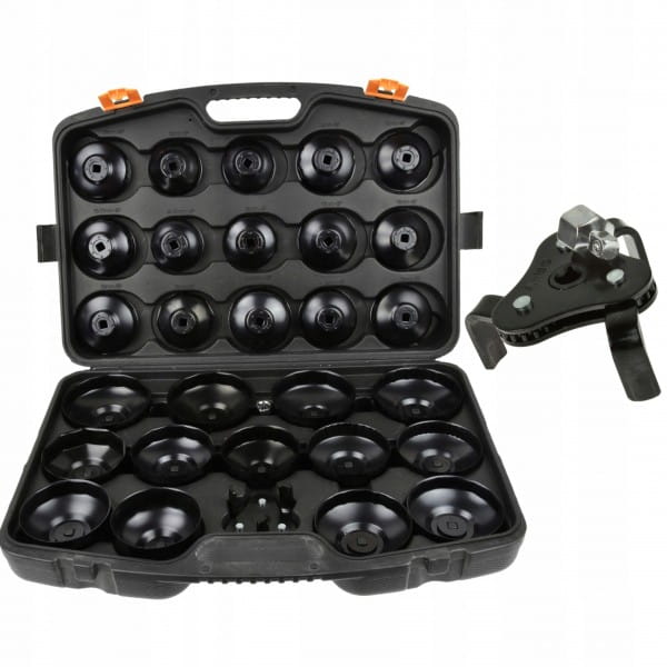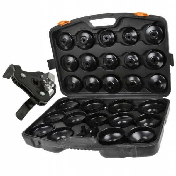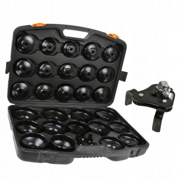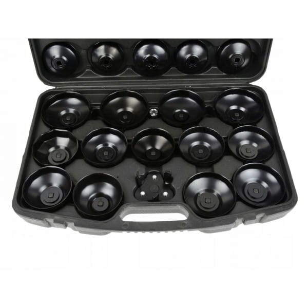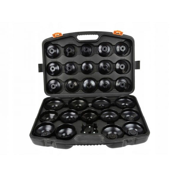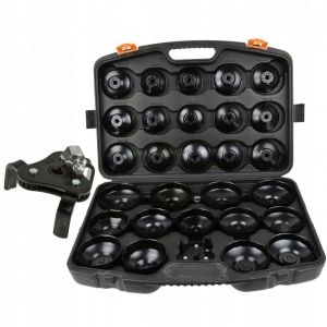 Zestaw 30 nasadek do odkręcania filtrów oleju. Pasuje do większości samochodów osobowych produkowanych na rynku europejskim, amerykańskim oraz azjatyckim.