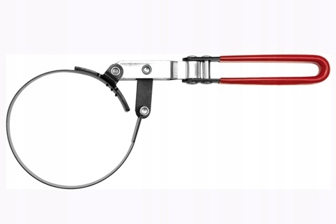 Profesjonalny klucz do filtrów oleju wykonany jest ze stalowej opaski zaciskowej, posiadającej wypustki, które ograniczają ślizganie się klucza na zanieczyszczonym filtrze, z rączki oprawionej gumą oraz wyposażonej w przegub ułatwiający pracę w trudno dostępnych miejscach.