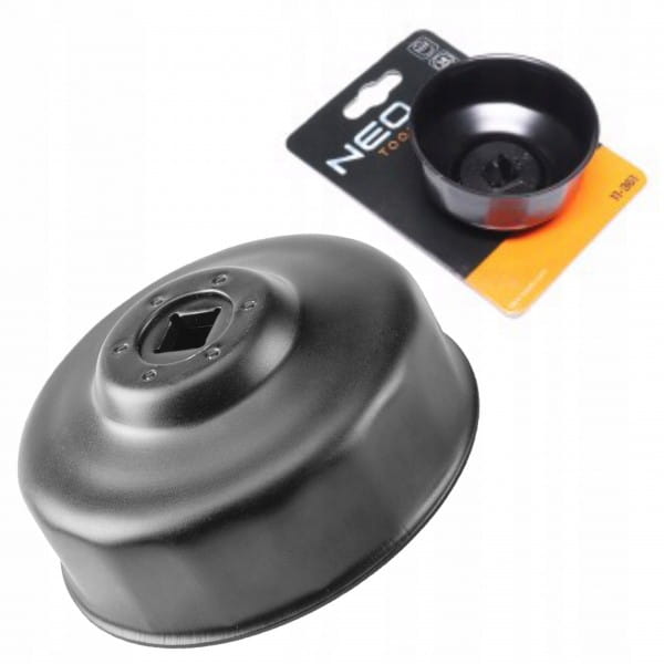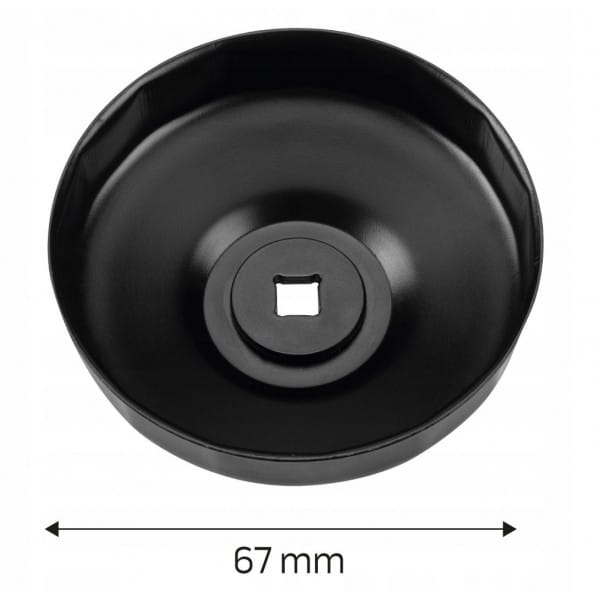 Nasadka do filtra oleju 67 mm, 14-kątna 11-362, NEO, profesjonalny klucz do filtra oleju. Pasuje do filtrów o średnicy 67 mm i 14 kątach. Nasadka ma kwadratowe wejście 3,8” (10mm). Pasuje do samochodów różnych marek. Nasadka została wykonana z blachy lakierowanej na czarno.
