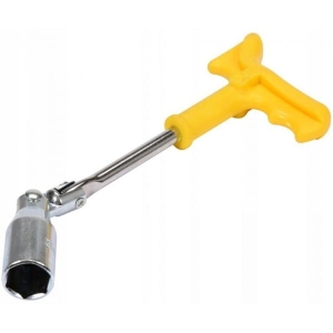 Klucz do świec o rozmiarze 16mm. Wykonany ze stali narzędziowej, posiada przegub ułatwiający pracę oraz wygodną plastikową rękojeść. Długość całkowita 260mm.