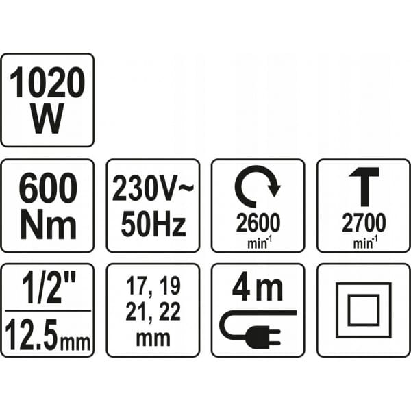 YATO ELEKTRYCZNY KLUCZ UDAROWY 600NM 1020W 1/2