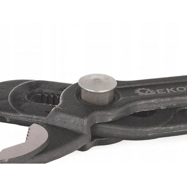 Szczypce do rur nastawne z przyciskiem 250mm Geko G00843 są wyposażone w mechanizm regulacji zębów, który pozwala na dopasowanie szczęk do średnicy rury. Dzięki temu narzędzie może być używane do pracy z rurami o różnych rozmiarach. Posiadają również specjalny przycisk, który umożliwia szybkie i precyzyjne regulowanie szczęk w trakcie użytkowania.