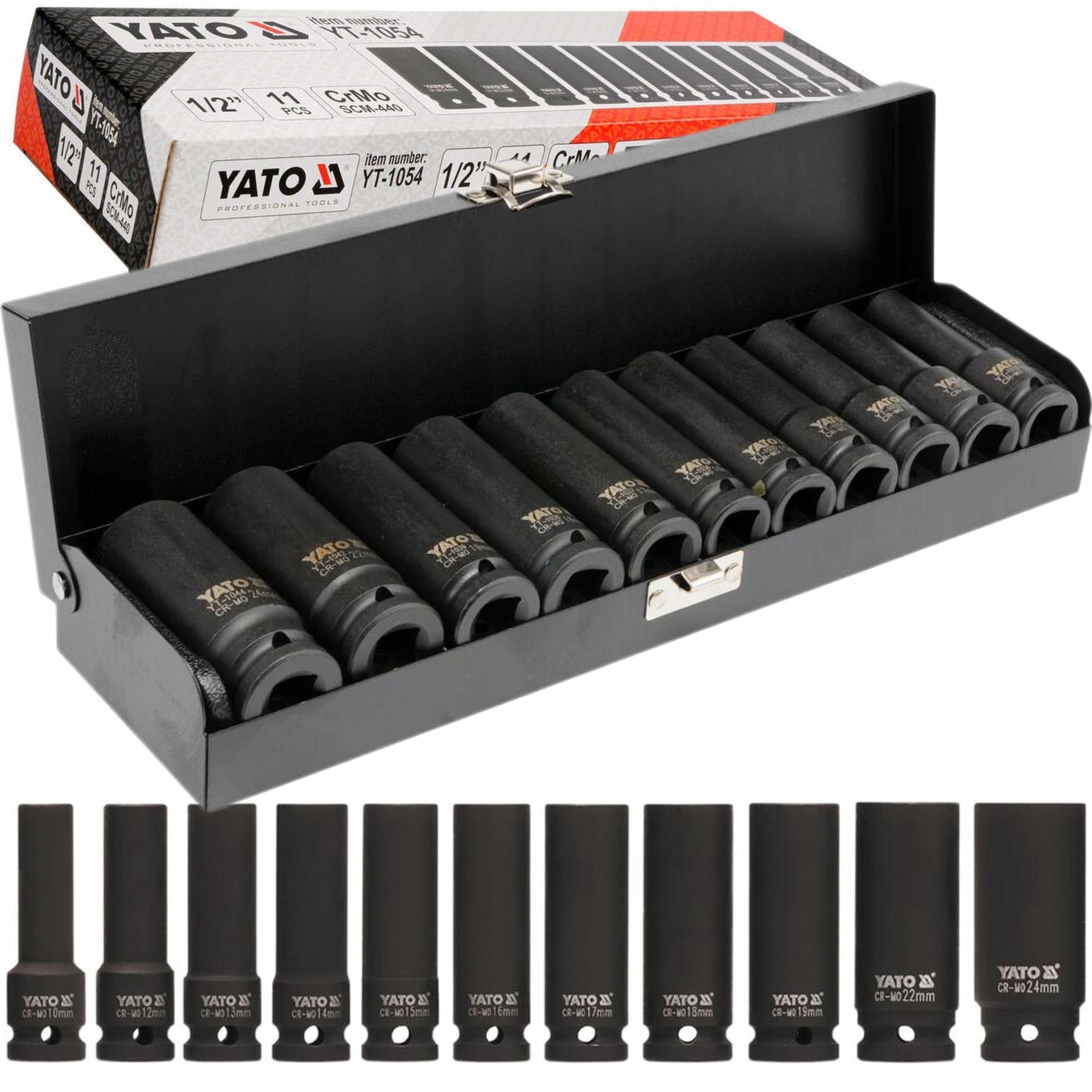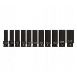 Nasadki udarowe Yato długie - komplet 11 kluczy nasadowych. Specjalistyczne nasadki udarowe, współpracują z urządzeniami pneumatycznymi, które pracują w bardzo ciężkich warunkach pod zmiennymi obciążeniami.