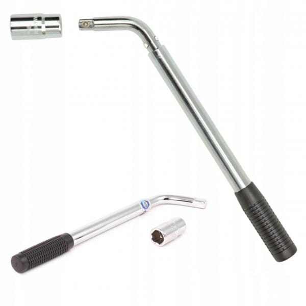 Rozsuwany klucz do kół samochodowych. Posiada nasadki 17mm, 19mm