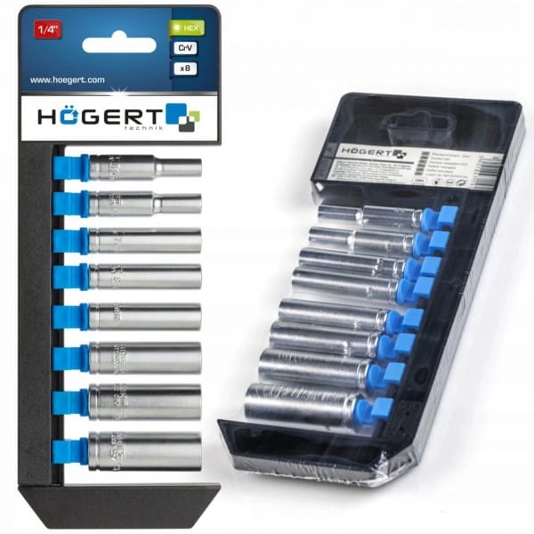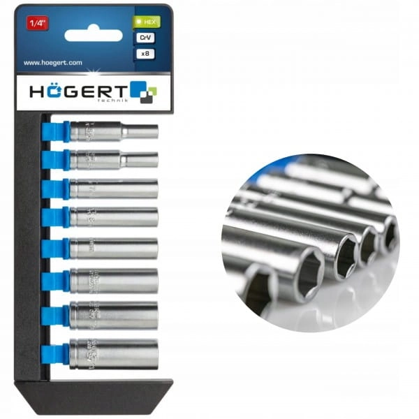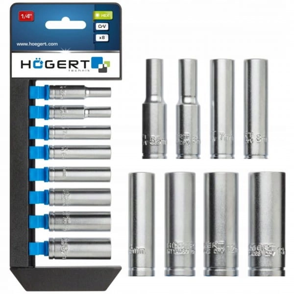 ZESTAW NASADEK DŁUGICH 1/4'' HOGERT HT1A886 8 SZT