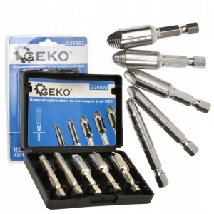 Zestaw wykrętaków do zerwanych śrub. Wykrętaki wykonane zostały ze stali szybkotnącej HSS 4341. Zestaw przeznaczony do wykręcania zerwanych lub uszkodzonych śrub i szpilek. Wykrętaki wyposażone w uchwyt HEX 1/4.
