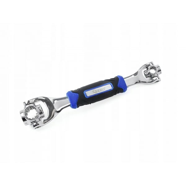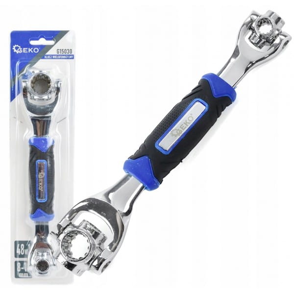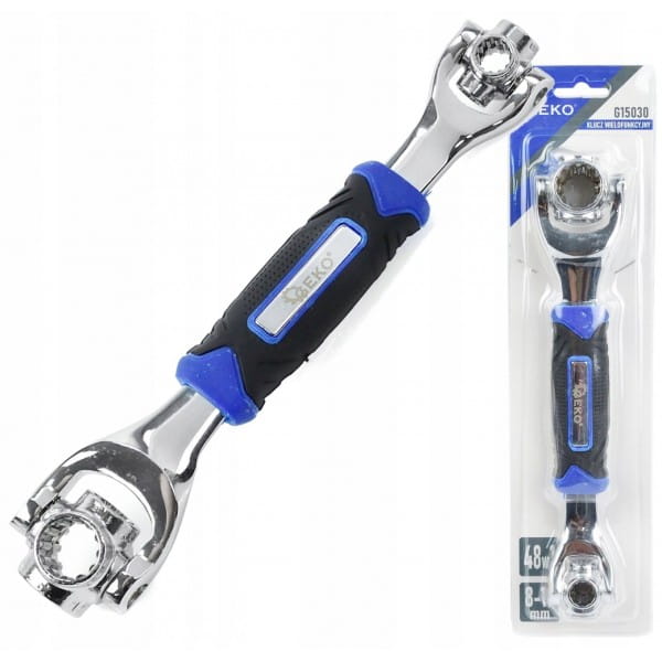 Uniwersalny klucz wielofunkcyjny 48w1 wykonany z wytrzymałej stali narzędziowej CrV. Klucz wielofunkcyjny 48w1 to niezastąpione narzędzie w każdym domu i garażu, a także w profesjonalnym warsztacie samochodowym. Z powodzeniem zastąpi klucze przeznaczone do śrub lub nakrętek 12-kątnych, 6-kątnych, 4 kątnych, E-Torx, wielowypustowych oraz calowych.
