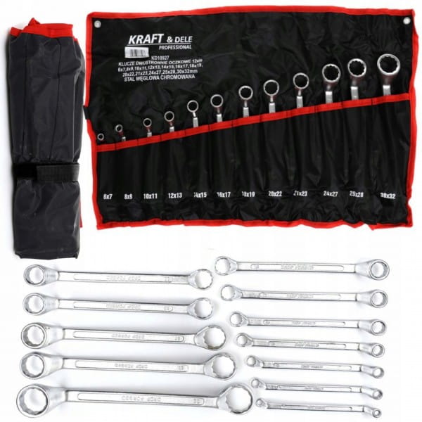 - Składa się z 12 części o rozmiarach: 6x7, 8x9, 10x11, 12x13, 14x15, 16x17, 18x19, 20x22, 21x23, 24x27, 25x28, 30x32mm