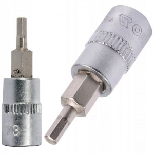 Profesjonalny klucz trzpieniowy HEX, rozmiar nasadki 1/4", rozmiar trzpienia 3 mm.