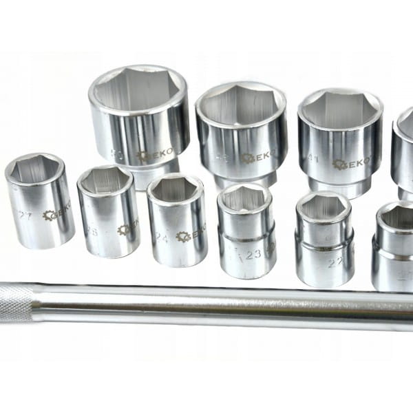 - nasadki 6-kątne 3/4" w rozmiarach: 19, 21, 22, 23, 24, 26, 27, 29, 30, 32, 35, 36, 38, 41, 46, 50 mm