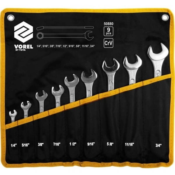 VOREL ZESTAW KOMPLET KLUCZE PŁASKO-OCZKOWE CALOWE 9ELEM. 1/4"-3/4" 50880