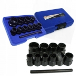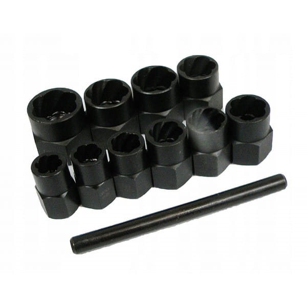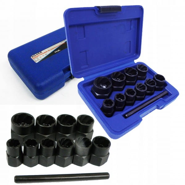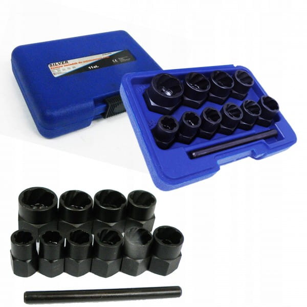 Zestaw do usuwania uszkodzonych nakrętek i śrub o rozmiarze 9 - 19 mm. Specjalny kształt nasadki ułatwiający zaklinowanie się jej na śrubie sprawia że odkręcenie uszkodzonej śruby nie będzie stanowiło problemu. Nasadki wykonano z bardzo wytrzymałej stali chromowo-molibdenowej (CR-MO), co daje im wysoką twardość oraz dużą odporność na uszkodzenia. Zestaw doskonale sprawdzi się w profesjonalnym warsztacie samochodowym, jak i w przydomowym garażu.