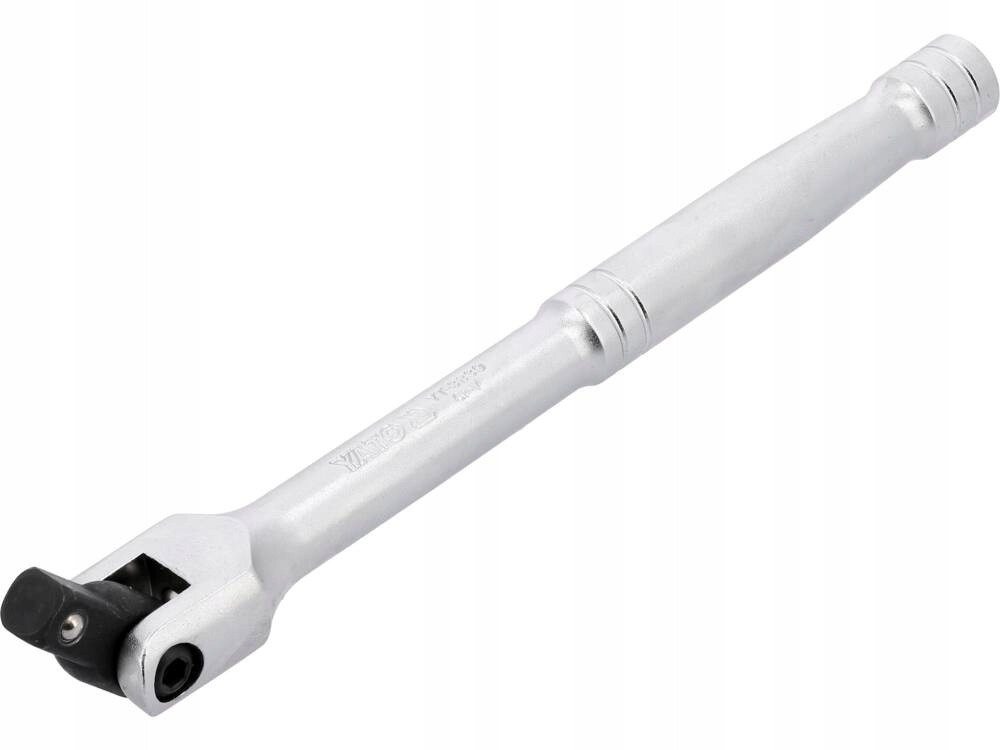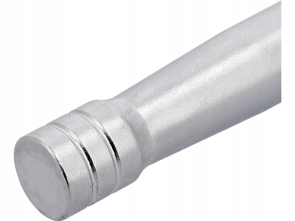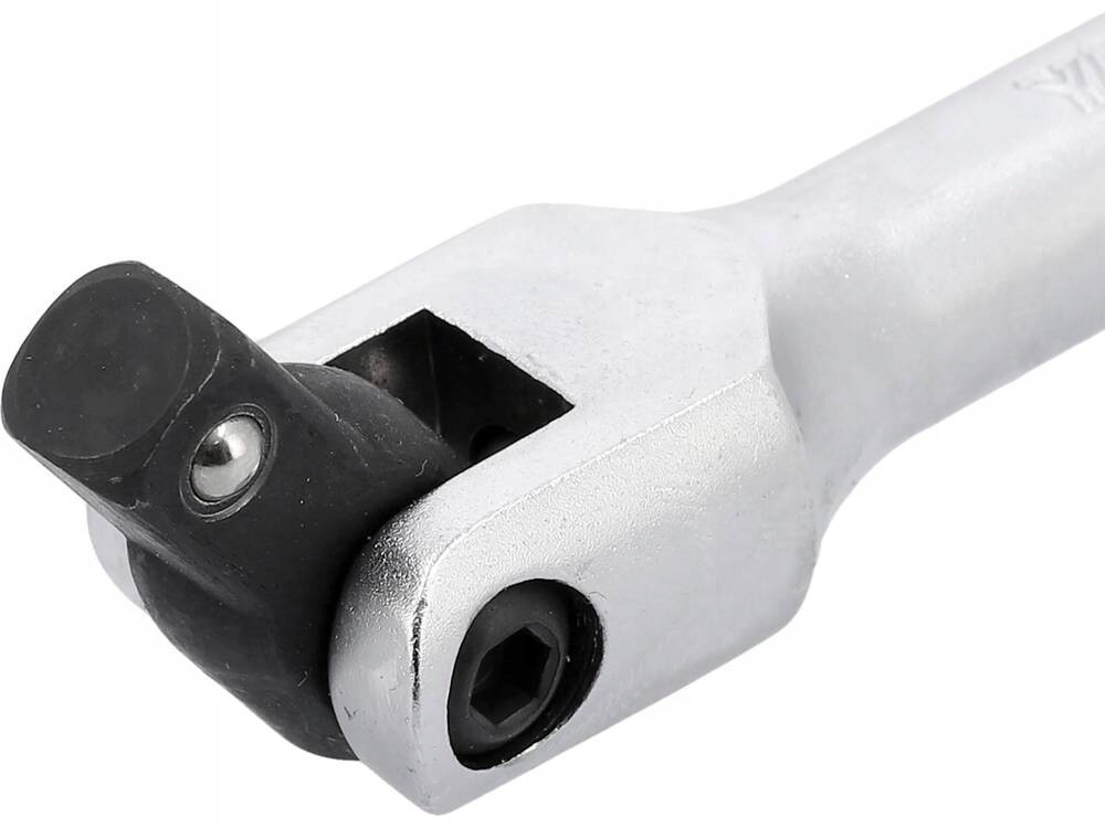 Produkt wykonany z wytrzymałej na zginanie i pęknięcia stali chromowo-wanadowej CrV 50BV30. Uchylny oksydowany trzpień posiada kulkę blokującą i ustalającą nasadkę podczas pracy.