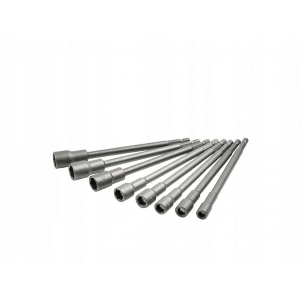 ▶️Zestaw nasadek magnetycznych długich do wkrętarki. W skład zestawu wchodzi 8 szt. nasadek o długości 150mm i rozmiarach 6-13mm. Każda nasadka posiada magnes który zapewnia bezpieczne trzymanie śruby/wkręta. Wykonane z wytrzymałej stali narzędziowej chromowo-wanadowej (CrV).