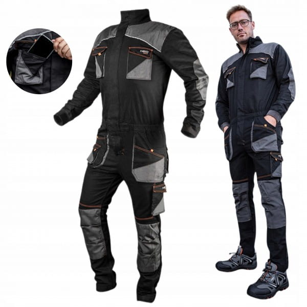 Kombinezon roboczy HD Slim, 81-258, NEO, wygodny kombinezon dedykowany do wszelkich prac, przeznaczony zarówno do użytku zawodowego, jak i domowego. Został wykonany z materiału z dodatkiem elastanu, więc dobrze dopasowuje się do sylwetki i nie krępuje ruchów. Idealnie komponuje się to z krojem typu slim, który podkreśla sylwetką i dobrze do niej przylega.
