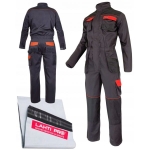 Kombinezon roboczy wykonany z 35% bawełny oraz 65% poliestru. Posiada 11 kieszeni w tym siedem zapinanych na rzep. Dwustronny zamek błyskawiczny oraz otwory wentylacyjne zwiększające cyrkulację powietrza wewnątrz kombinezonu. Mocne potrójne szwy. Rękawy z regulacją na rzep i regulacja szerokości w pasie za pomocą gumki. Dodatkowe oczko na klucze oraz szlufka na młotek. Wzmocnione rękawy, karczek oraz kieszenie na ochraniacze kolan materiałem 300D (poliester) odpornym na przetarcia. Wszywka identyfikacyjna. Do kombinezonu dodatkowo można zakupić ochraniacze kolan o numerze katalogowym LPN001. Odzież robocza posiada certyfikat CE oraz normę EN ISO 13688 oraz jest w pierwszej kategorii środków ochrony indywidualnej.
