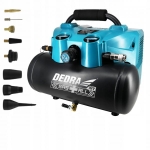 Kompresor powietrza przeznaczony jest do sprężania powietrza atmosferycznego i po zastosowaniu odpowiedniego oprzyrządowania może być wykorzystany do prac związanych z przedmuchiwaniem, czyszczeniem, myciem, pompowaniem kół, malowaniem itp. Kompresor zasilany jest dwoma akumulatorami z serii DEDRA SAS+ALL o napięciu 18V. Kompresor posiada zbiornik o pojemności 6L, zapewniający zapas sprężonego powietrza podczas wykonywania pracy.