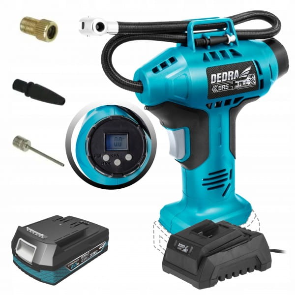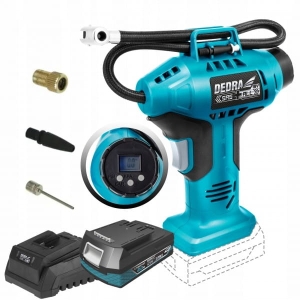 Kompresorek, pompka pistoletowa akumulatorowa 18V DEDRA SAS+ALL 11Bar, z wyświeltaczem LCD