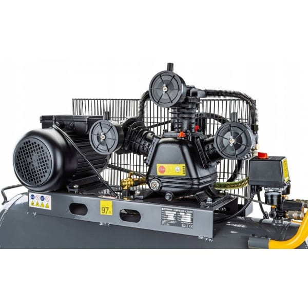 Sprężarka zapewnia wytworzenie w zbiorniku ciśnienia o wartości 8 bar oraz wydajność efektywną na poziomie 650 l/min. Sprężarka napędzana jest energooszczędnym silnikiem elektrycznym o mocy 3 kW.