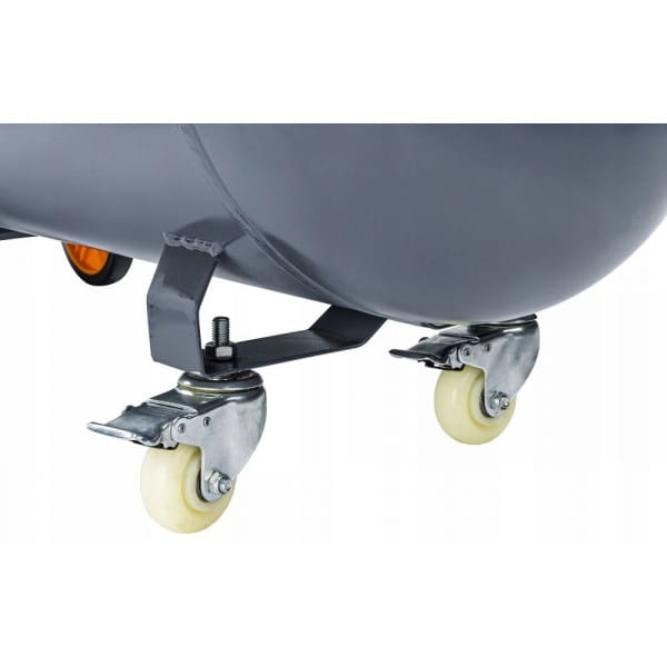 Kompresor jest łatwy do przemieszczenia dzięki skrętnym kołom i wygodnemu uchwytowi transportowemu.