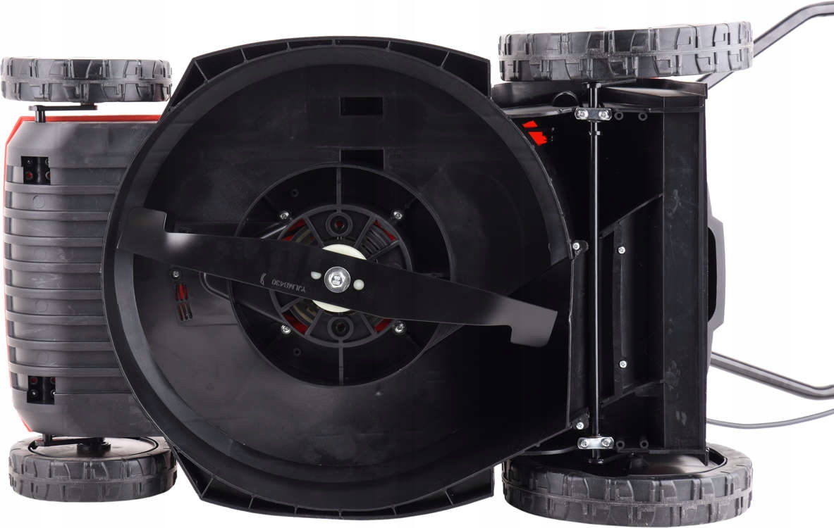 Trwałe, solidne i duże koła, w które jest wyposażona kosiarka pozwalają na koszenie w trudnych terenach. Duża moc kosiarki (1800W), duża prędkość obrotowa na poziomie 3300 obrotów na minutę oraz szeroki nóż (38cm) pozwolą natomiast na szybkie, a zarazem dokładne ścięcie trawnika i nadaniu mu odpowiedniego wyglądu.
