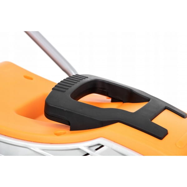 Praktyczny kosz na ścinki ma aż 45 litrów pojemności, a także wskaźnik napełnienia, który powie Ci, kiedy należy pojemnik opróżnić. Ergonomiczny uchwyt i bardzo solidne kółka dają maksymalny komfort pracy bez obaw o to, że urządzenie nie wytrzyma któregoś z Twoich manewrów. Dla bezpieczeństwa użytkownika producent zastosował również termiczne zabezpieczenia przeciążeniowe.