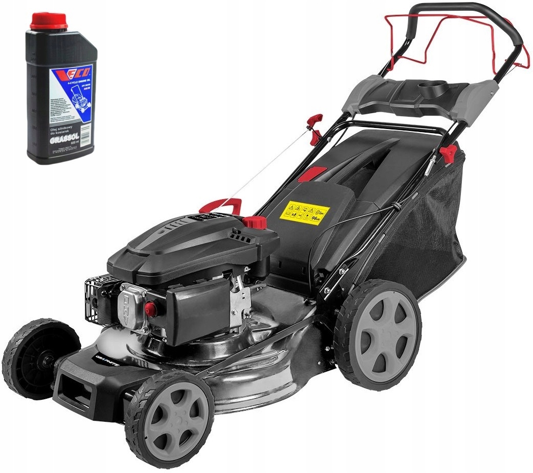 Kosiarka spalinowa z napędem 3.0KM, 52G671, GRAPHITE, znacznie ułatwia dbanie o przydomowy trawnik, ogród i działkę. Dzięki napędowi praca jest wygodna i łatwa. Urządzenie zostało wyposażone w 5-stopniową regulację wysokości strzyżenia. Zainstalowany kosz zbiera skoszoną trawę, dzięki temu oszczędza to pracy przy jej zbieraniu. Oprócz tego urządzenie umożliwia wyrzut boczny i mulczowanie.