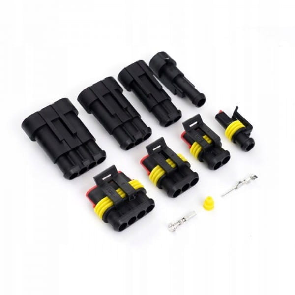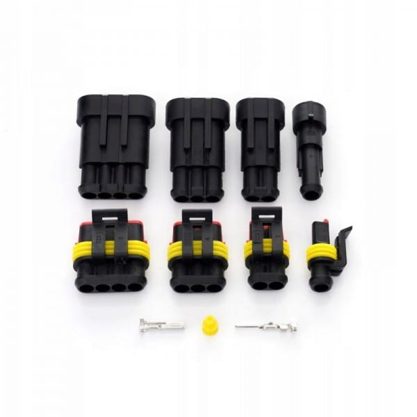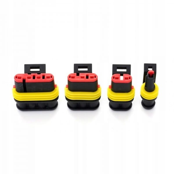 6 x męskie złącze obudowy, 6 x żeńskie złącze obudowy, 12 x męski pin, 12 x trzpień żeński, 24 x silikonowa wodoodporna wtyczka