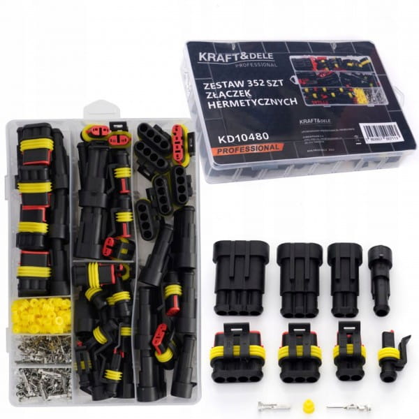 KRAFT&DELE ZESTAW ZŁĄCZEK WTYCZEK KOSTEK HERMETYCZNYCH 352 ELEMENTY KD10480