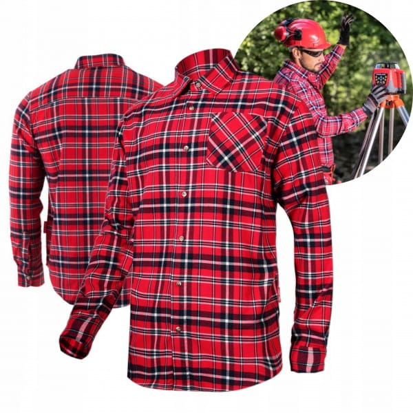 Koszula flanelowa Lahti Pro L41803 wykonana ze stu procentowej bawełny o gramaturze 170g/m2. Na lewej piersi znajduje się kieszeń. Koszula zapinana na guziki. Odzież znajduje się w pierwszej kategorii środków ochrony indywidualnej. Posiada deklarację zgodności CE i spełniają postanowienia normy EN ISO 13688.