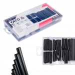 Zestaw koszulek termokurczliwych. Zawartość opakowania to 127 sztuk koszulek o różnych średnicach i długościach. Kolor czarny. Całość umieszczona w wygodnym opakowaniu typu "sortownik".