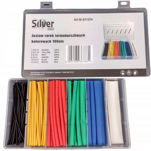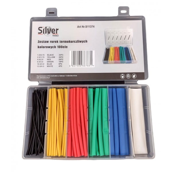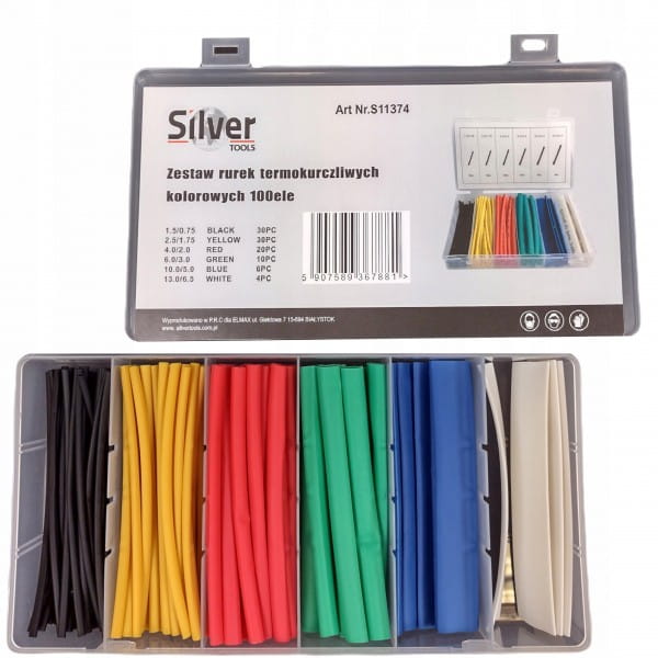 SILVER ZESTAW RURKI KOSZULKI TERMOKURCZLIWE KOLOROWE 100EL ORGANIZER S11374