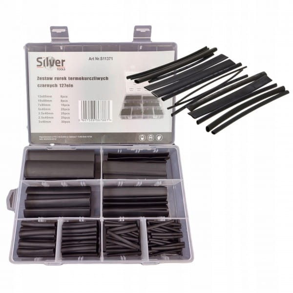 SILVER ZESTAW RURKI KOSZULKI TERMOKURCZLIWE CZARNE 127SZT ORGANIZER S11371