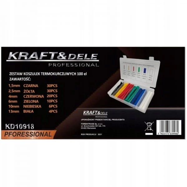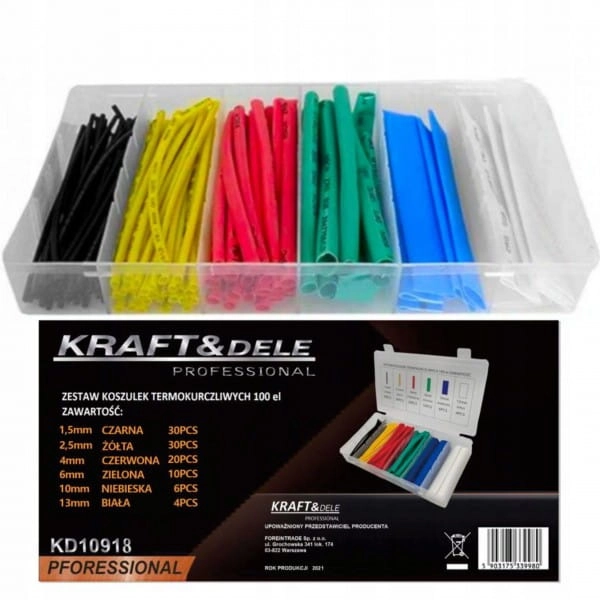 ZESTAW KOSZULKI RURKI TERMOKURCZLIWE 100SZT. ORGANIZER KRAFT&DELE KD10918
