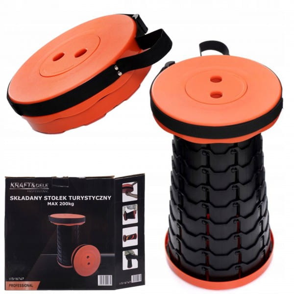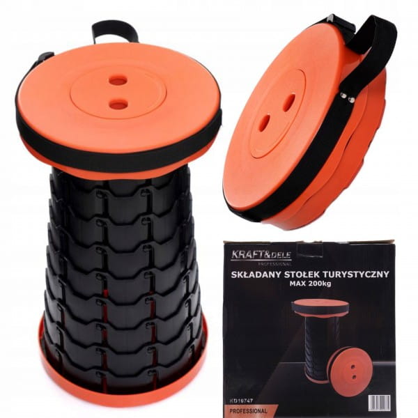 Składany stołek turystyczny polskiej marki KraftDele model KD10747. Dzięki uniwersalności może być wykorzystywany przez dzieci, jak i dorosłych. Idealnie sprawdzi się podczas wypadu na ryby, pod namiot, piknik a także podczas prac ogrodowych.