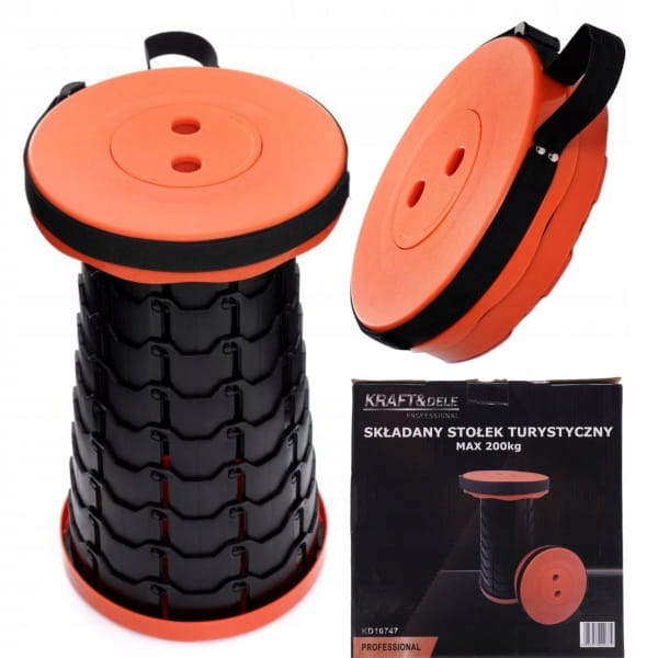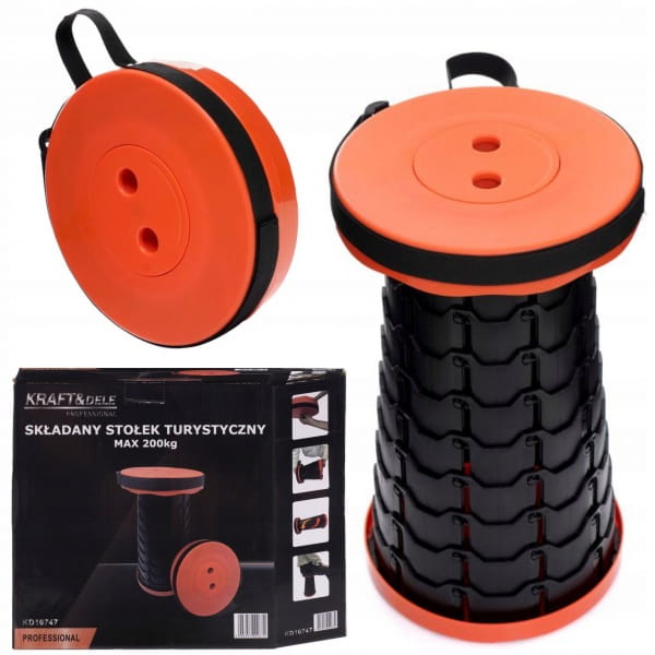 Stołek wyróżnia się regulowaną wysokością, dzięki czemu można go precyzyjnie dostosować do aktualnych potrzeb. Po złożeniu zajmuje bardzo mało miejsca, co ułatwia przechowywanie i transport. Dodatkowo wyposażony został w pasek o szerokości 2,5 cm, który umożliwia wygodne przenoszenie na ramieniu lub w dłoni. Solidna konstrukcja pozwala na bezpieczne użytkowanie nawet przy obciążeniu do 200 kg.
