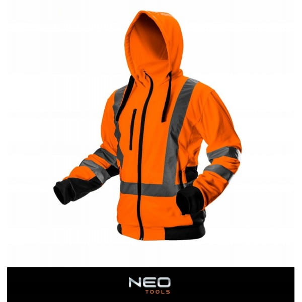 Bluza robocza ostrzegawcza NEO o intensywnej widzialności to praktyczne rozwiązanie zwiększające bezpieczeństwo użytkownika, polegające na sygnalizowaniu jego obecności w każdych warunkach oświetlenia dziennego jak i w ciemności w sztucznym oświetleniu np. światłami pojazdów. Wewętrzna strona wykonana z polaru zapewnia komfort użytkowania podczas pracy w niższych temperaturach. Dwuwarstowowy kołnierz oraz kaptur zwiększają komfort termiczny. Bluza posiada 3 duże kieszenie zapinane na suwak. Gwarantem jakości jest certyfikat europejski oraz wykonanie zgodne z normą EN ISO 13688:2013. Zgodność z europejskimi standardami bezpieczeństwa zapewnia certyfikat CE. Marka NEO spełnia oczekiwania profesjonalistów