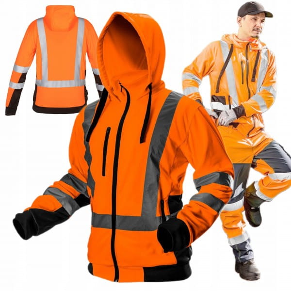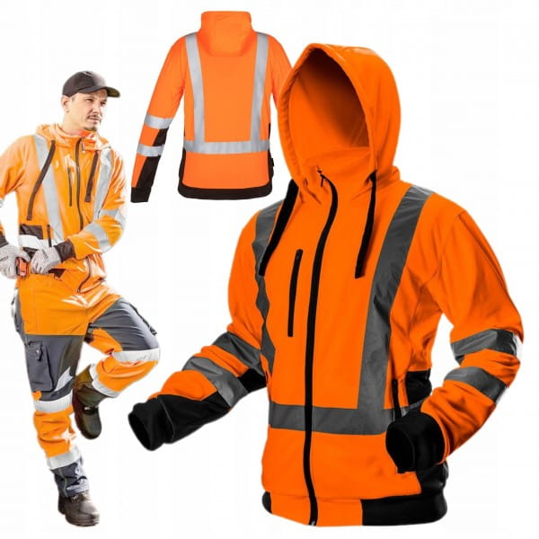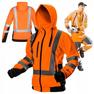 Bluza robocza ostrzegawcza NEO o intensywnej widzialności to praktyczne rozwiązanie zwiększające bezpieczeństwo użytkownika, polegające na sygnalizowaniu jego obecności w każdych warunkach oświetlenia dziennego jak i w ciemności w sztucznym oświetleniu np. światłami pojazdów. Wewętrzna strona wykonana z polaru zapewnia komfort użytkowania podczas pracy w niższych temperaturach. Dwuwarstowowy kołnierz oraz kaptur zwiększają komfort termiczny. Bluza posiada 3 duże kieszenie zapinane na suwak. Gwarantem jakości jest certyfikat europejski oraz wykonanie zgodne z normą EN ISO 13688:2013. Zgodność z europejskimi standardami bezpieczeństwa zapewnia certyfikat CE. Marka NEO spełnia oczekiwania profesjonalistów