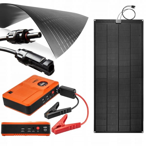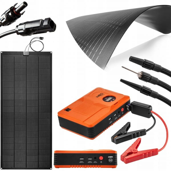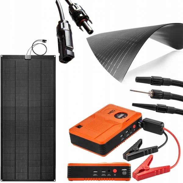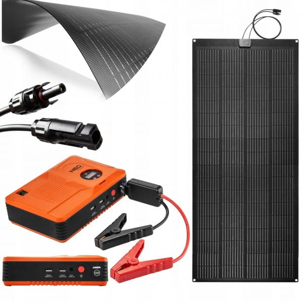 Panel słoneczny przenośny 200W, ładowarka solarna, 90-144, NEO jest urządzeniem, które równie dobrze sprawdzi się w drodze jak i w montażu, do stałego zasilania energią słoneczną. Charakteryzuje się mocą 100W, i półelastyczną konstrukcją, która pozwala na wygodne zamocowanie np. do lekko wypukłego dachu samochodu.