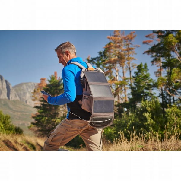 - Paski z zaczepami z tkaniny umożliwiają łatwe przymocowanie panelu słonecznego do plecaka lub namiotu