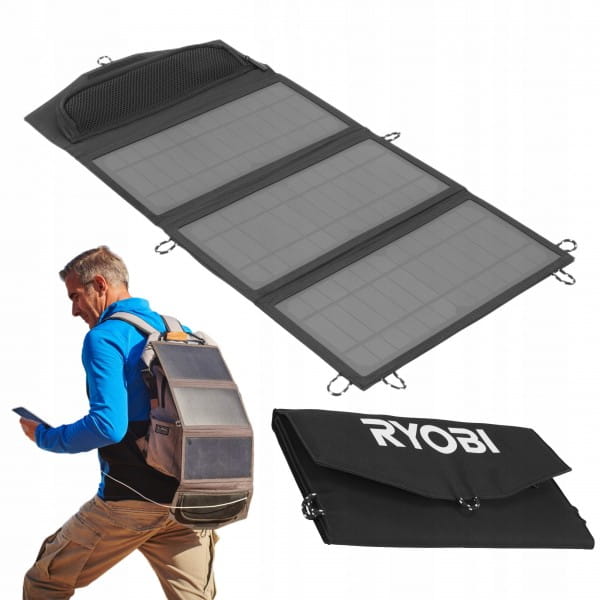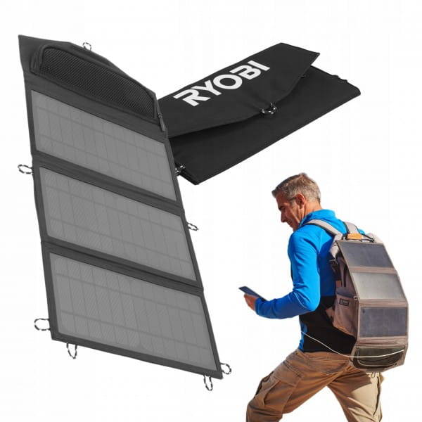 - Panel solarny RYOBI o mocy 21 W jest idealny do zasilania urządzeń w podróży