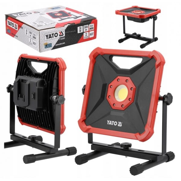 Posiada 2 tryby pracy o natężeniu światła 3600 lub 1800 lumenów. Zasilany akumulatorami platformy YATO 18 V.