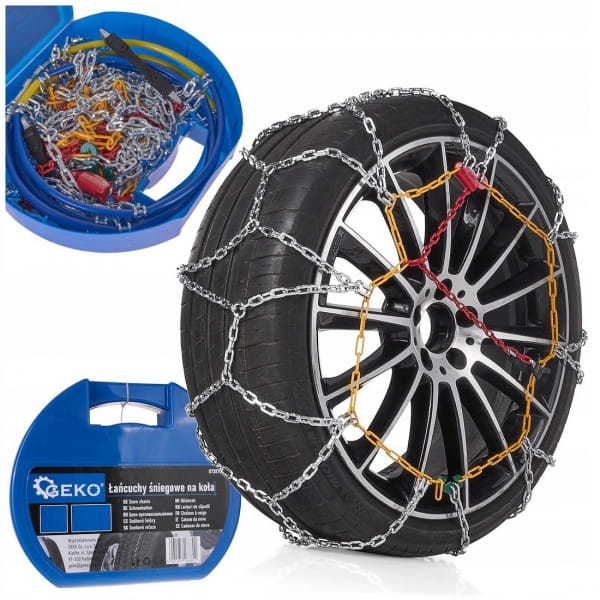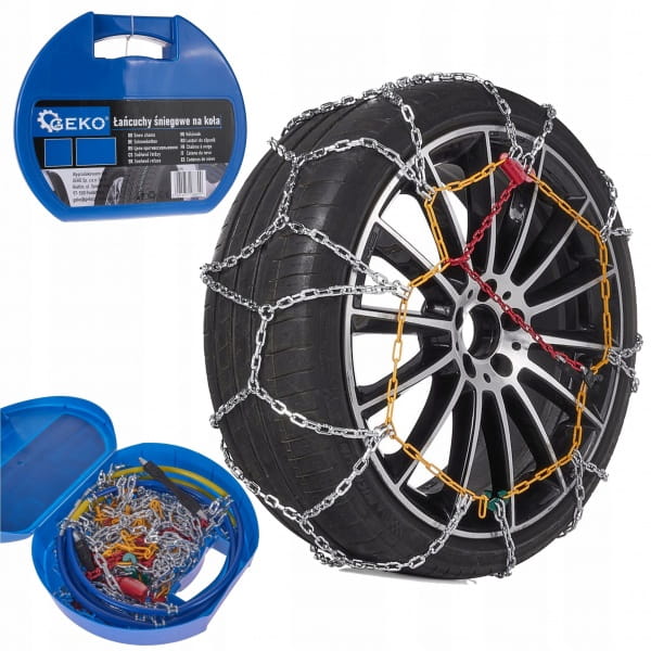 Solidne łańcuchy śniegowe na koła do samochodu marki Geko
